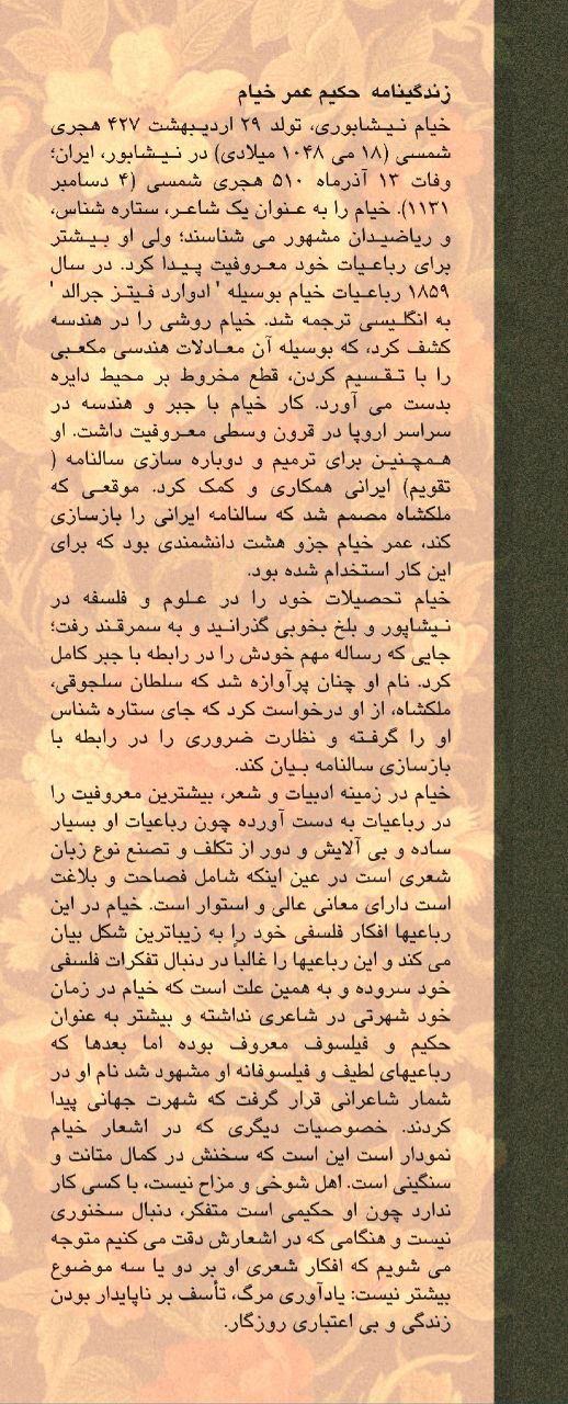 برگزیده رباعیات خیام بخط دکتر محمدصادق محفوظی